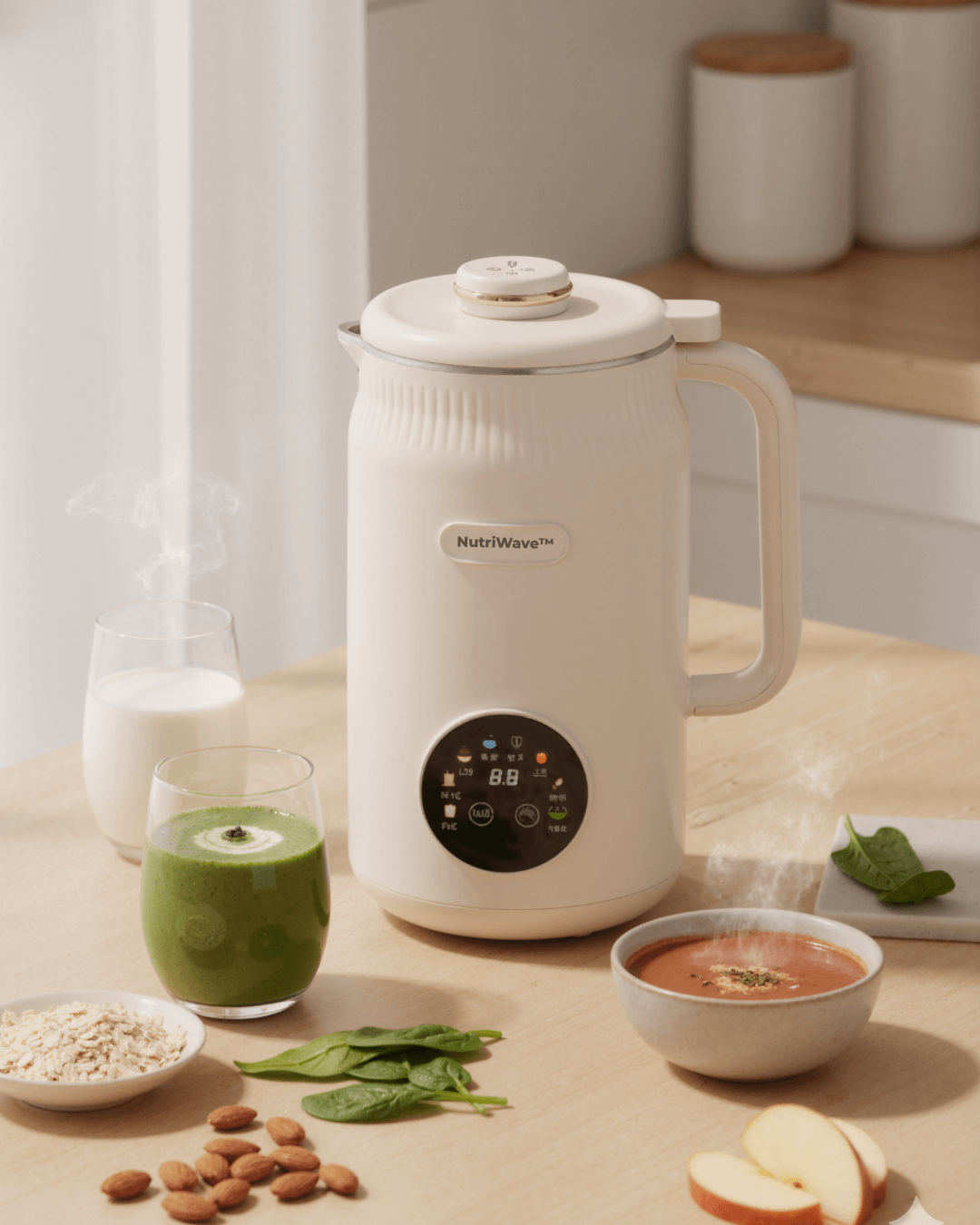 Verifizierter KaufIch benutze den NutriWave fast täglich. Mein Frühstücksshake, frische Mandelmilch und am Abend eine Suppe – alles mit einem Gerät. Spart Platz und Geld.
